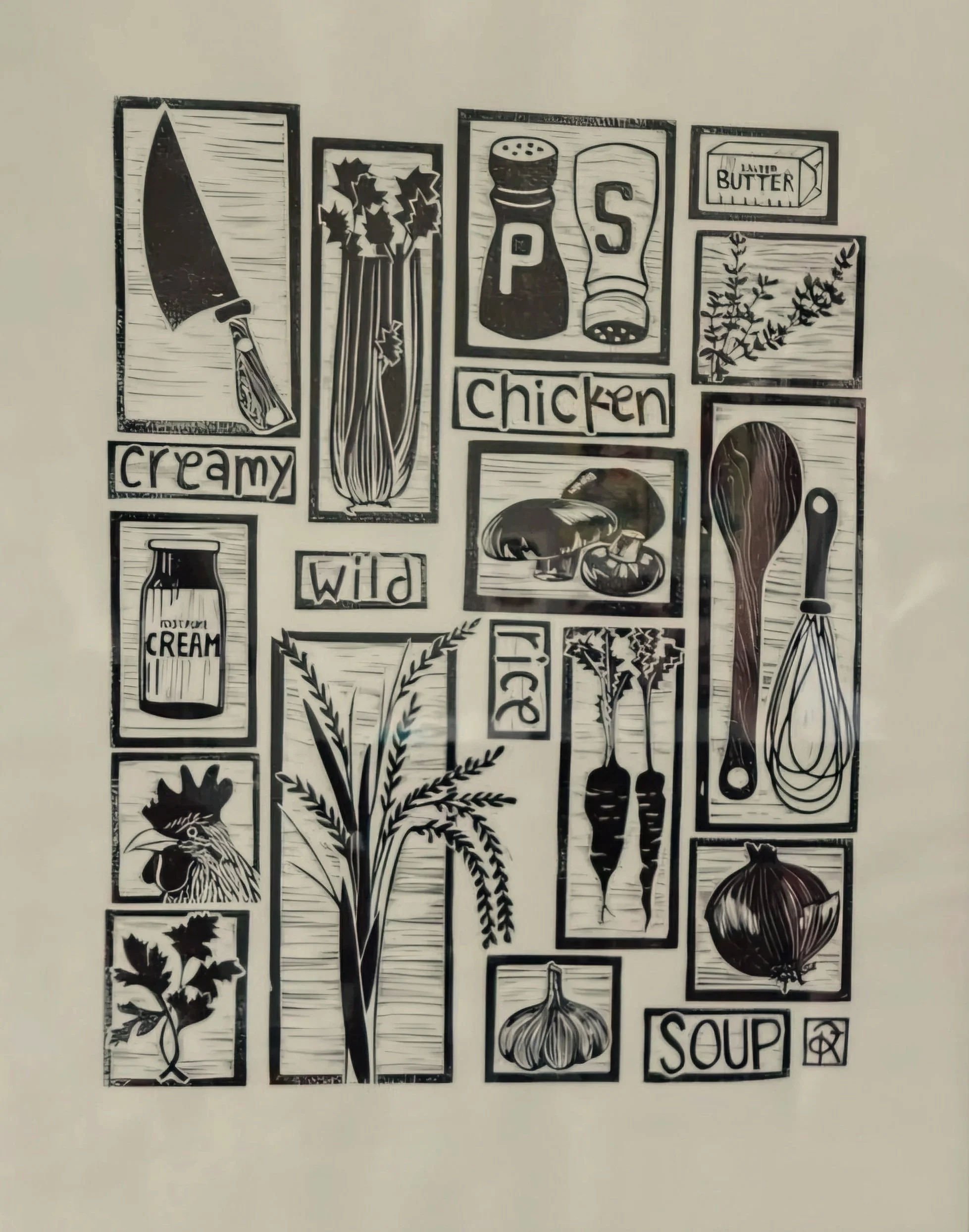 A growing collection of illustrated recipes, hand printed in large scale format. Each piece is 18”x24” and highlights the attention to detail, appreciation of quality, and love of variety that Kassandra values in art, cooking, and life.
